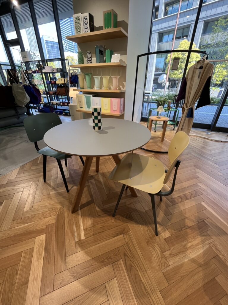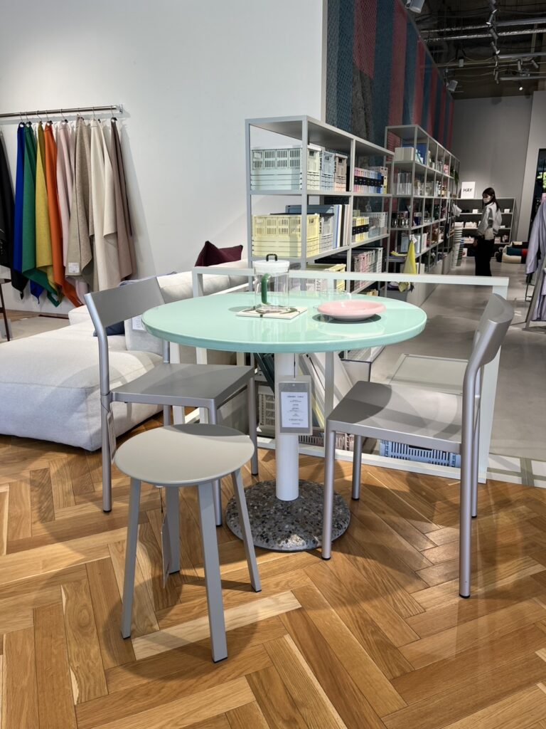 大阪中之島美術館に来たら必ず立ち寄るインテリアショップHAY(ヘイ)。デンマークのインテリアブランドで、アート、建築、現代カルチャーの3つをインスピレーションの源にして作られていて、とてもカラフルでデザインが楽しい家具や雑貨がいっぱいあります。探し中の丸テーブルが気になりじっくり見てきました。HAYの椅子、雑貨を一つ置くと空間がパッと明るく洗練される、そんな家具・雑貨がたくさんあります。是非行ってみてください。