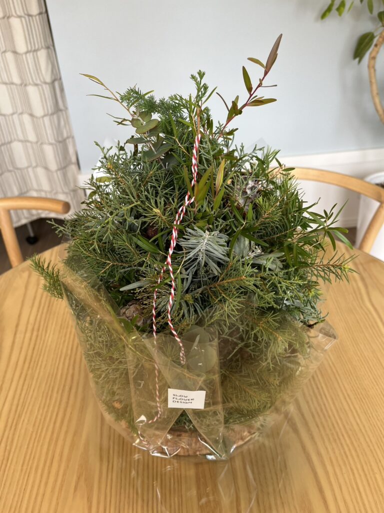 スローフラワーデザインのツリー アレジメント