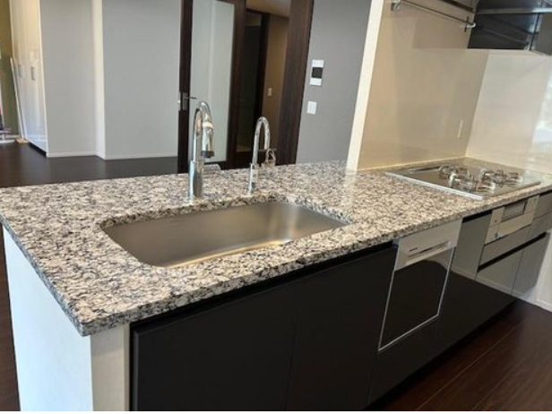 キッチンには御影石が施されています。リビングから広がるお庭が戸建てに住んでいるかのような解放感があります。ペットも飼育可能です。エントランスもとてもおしゃれです。ロビーはお庭が見える設計です。