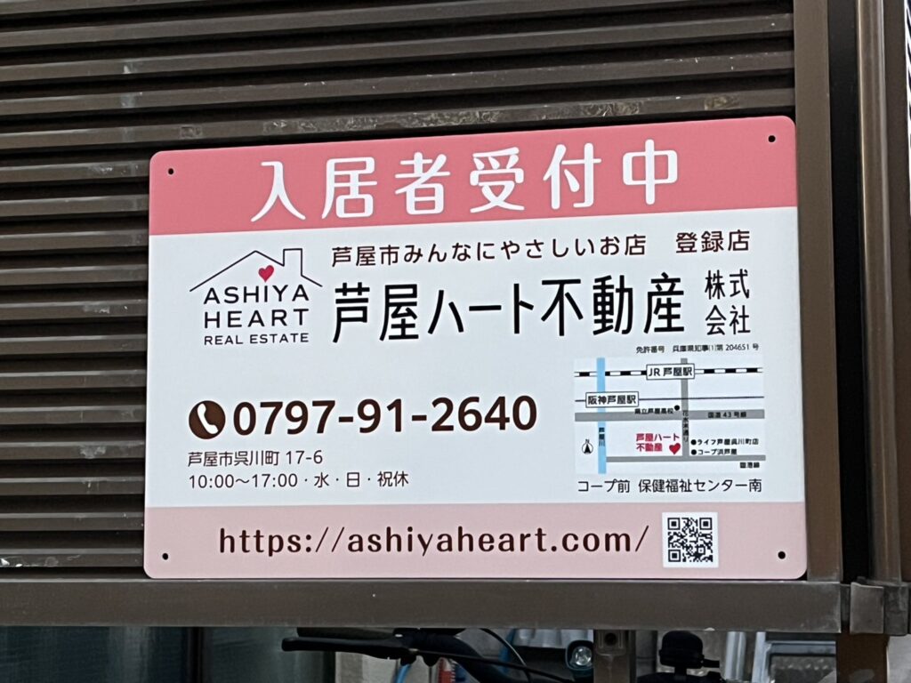このたび、芦屋市伊勢町の物件に弊社の看板を設置させていただきました。サニーコート伊勢町の3階2LDKが募集中です。無料Wi-Fi、ペット相談可、60㎡ありますので、ご興味ありましたら是非ご連絡下さいませ。