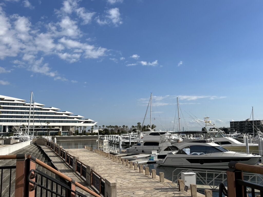 大阪トヨペットの店舗もできるようです。いまはマルハチのほか、セイラーズブリューカフェや、サイゼリア、革製品のHEDGE(ヘッジ)というお店があります。ヨットハーバーの方も歩いてみました。