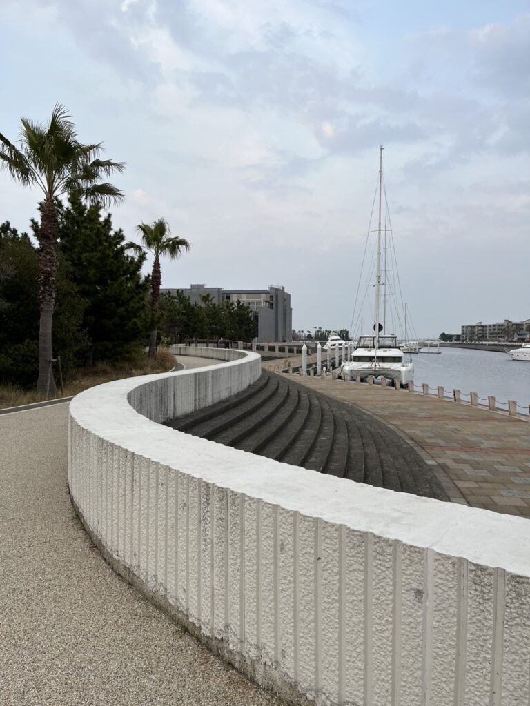 南芦屋浜のライフガーデン潮芦屋の南側の海沿いは、ヨットハーバーを眺めながらお散歩できます。リゾート地をお散歩している気分になりますよ。ワンちゃんをつれてお散歩されている人や、ジョギング、ウォーキングを楽しんでいる方もいらっしゃいます。これからお散歩によい季節になりますし、是非行ってみてください。