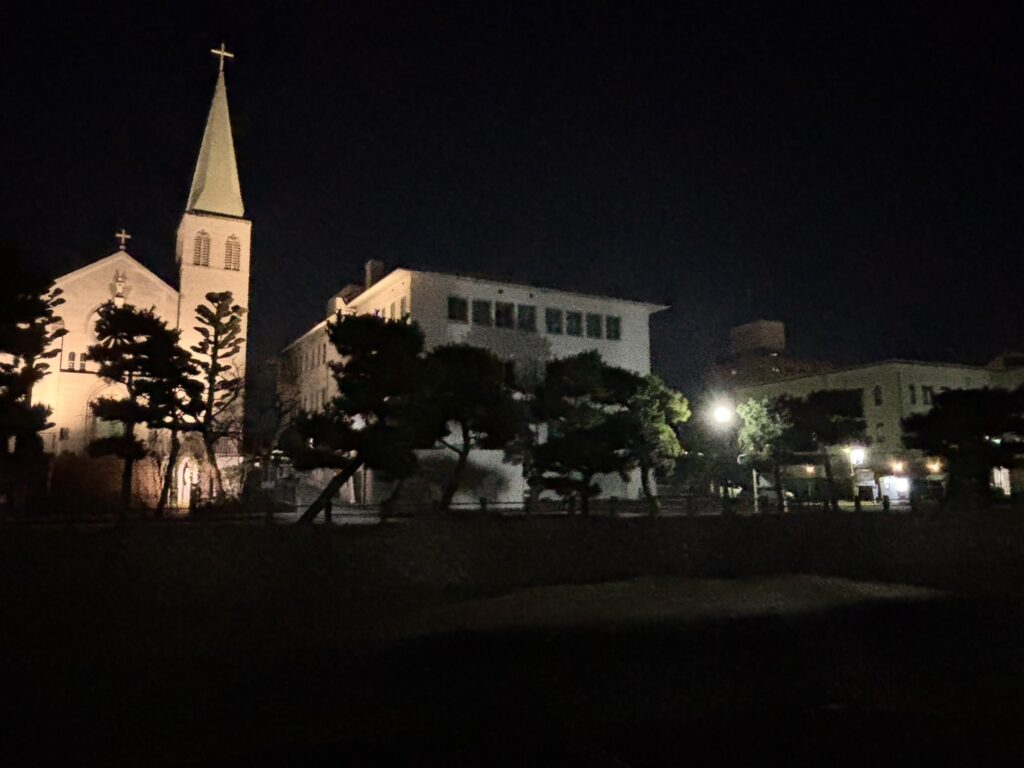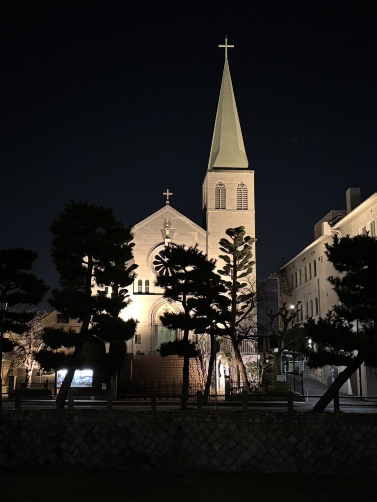 芦屋川沿いをお散歩しました。カトリック芦屋教会がライトアップされ、とても美しいです。この教会、芦屋市の「景観重要建造物」に指定されています。建物内もステンドグラスがとてもきれいで心も清らかになる空間です。是非行ってみてください。