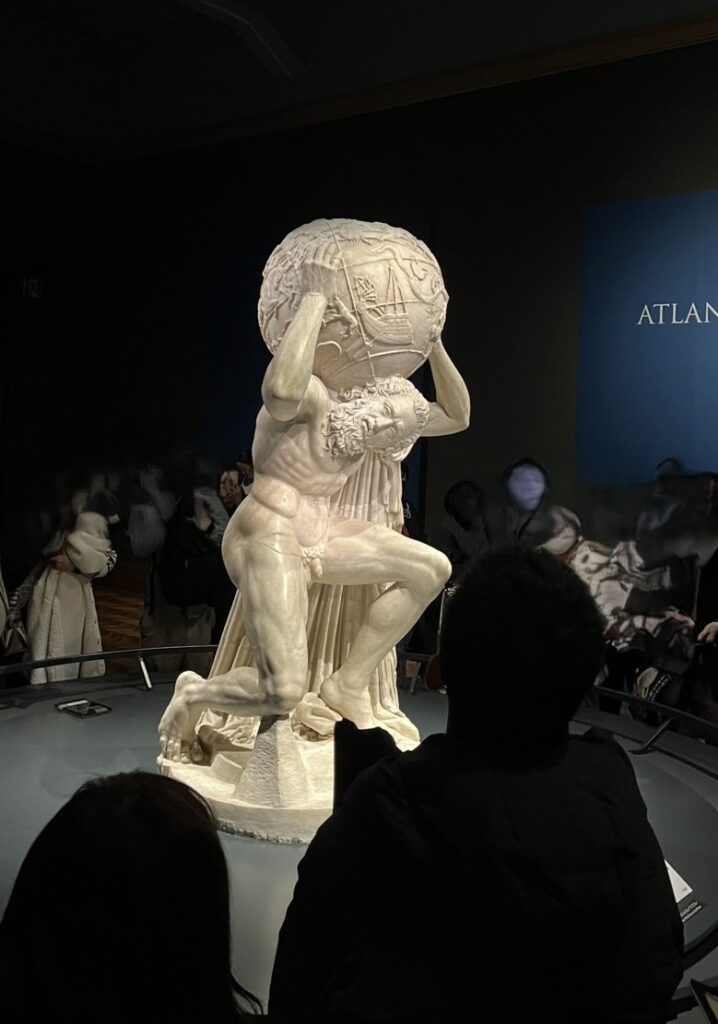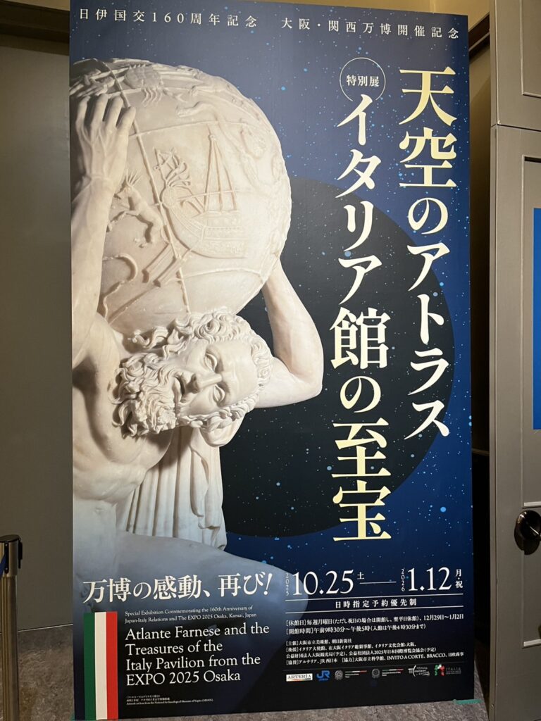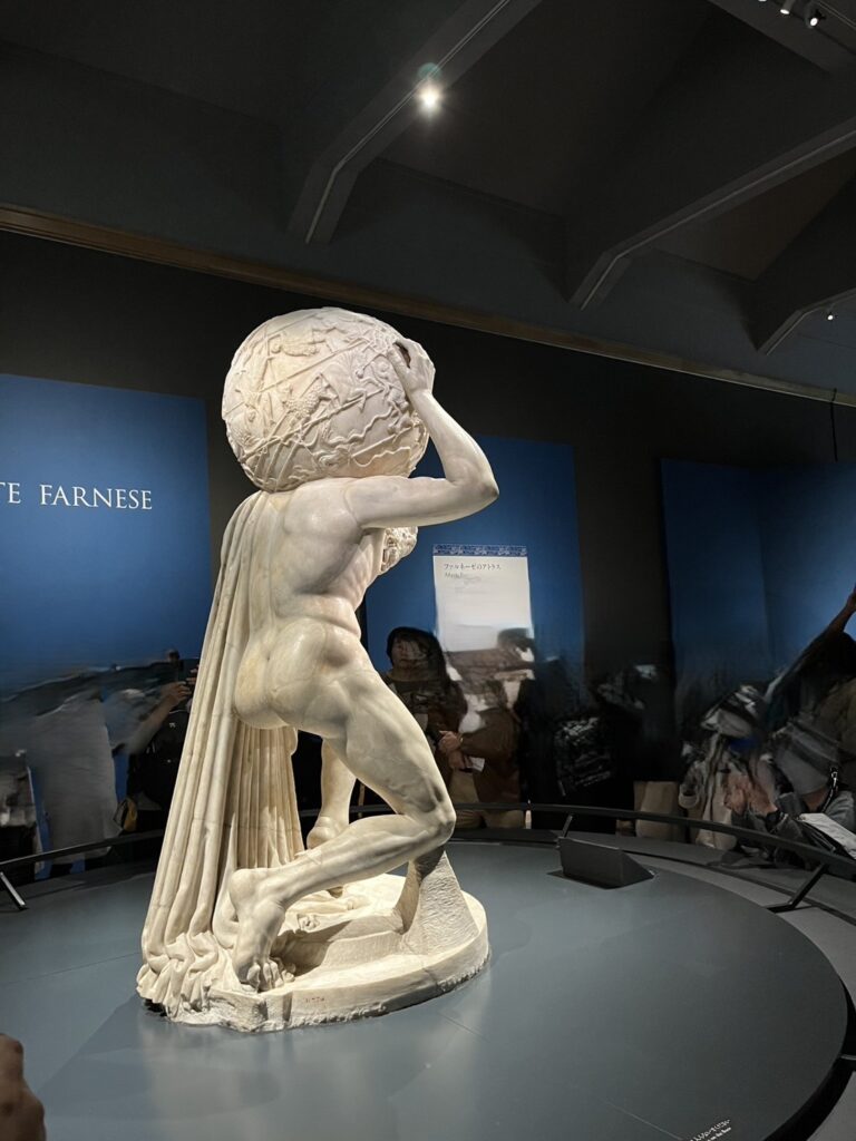 万博で行けなかったイタリア館でしたが、大阪市立美術館で天空のアトラス、見てきました!高さ2m、重さ2トン、ものすごく迫力のある大理石の彫刻です。肩に担いでいる天球儀は宇宙を表す現存最古の天球儀だそう。天球儀に描かれている星座の位置関係は実際の星の配置とほぼ一致しているそうです。これが日本の弥生時代に作られたのかと思うと、ほんとに驚きと感動でいっぱいになります。見に行けてよかったです。アトラスの他、ペルジーノ作「正義の旗」や、レオナルド・ダ・ヴィンチの手稿も見ることができました。実際に行って、見て、感じる、その時間はとても貴重で心が満たされました。