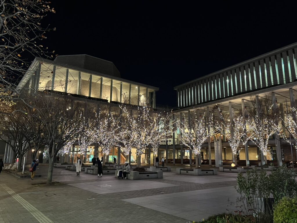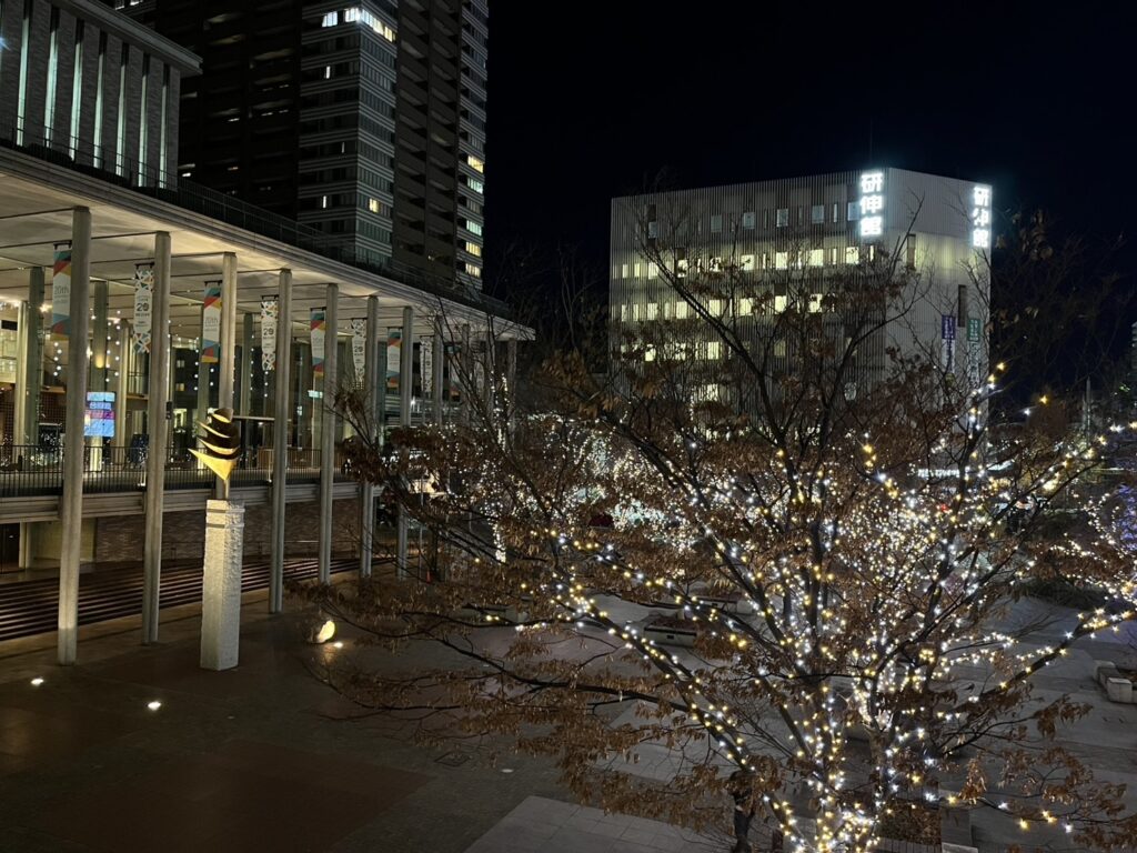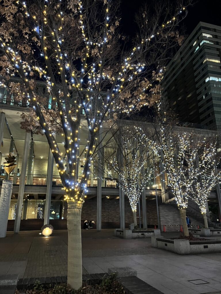 外は寒いですが、イルミネーションが美しく、光を見ていると寒さが和らぎました。