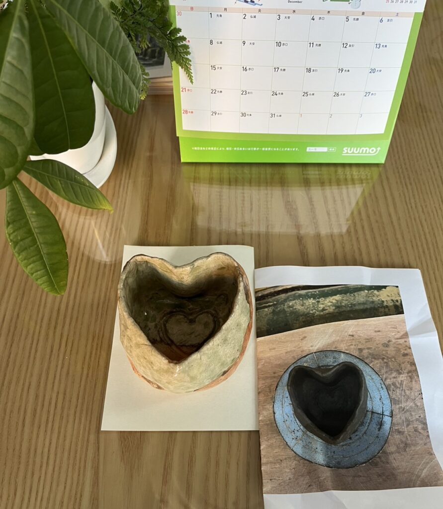 10月に行った宅建協会女性部主催の日帰り滋賀バスツアーの時に、信楽陶芸村で作った陶芸が出来上がりました!芦屋ハート不動産なのでハートの形にしました!花器に使いたいと思います。